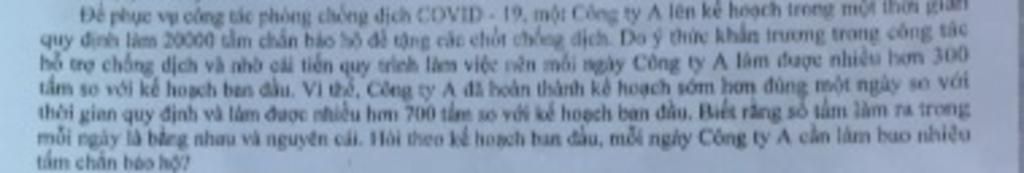 Để phục vụ công tác phòng chống dịch CovID - 19, một Công ty A lên kế hoạch trong một trung gia