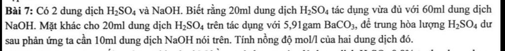 {n_{{H_2}S{O_4}}} = {n_{BaC{O_3}}} + \dfrac{{{n_{NaOH}}}}{2} \Leftrightarrow 0,02b = 0,03 + \frac{{0,01a}}{2}(2)\\