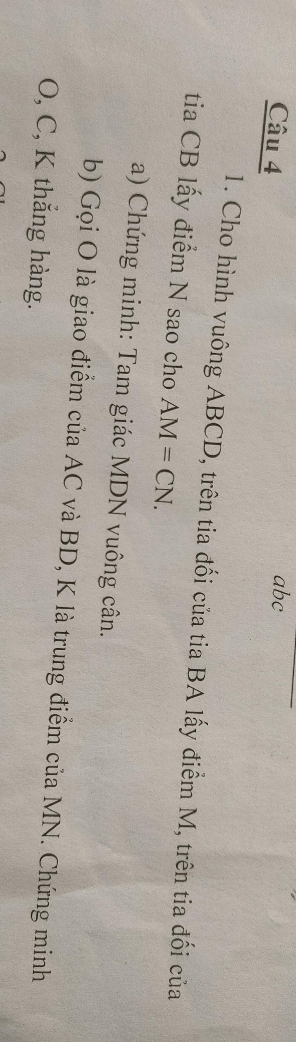 Vậy `O,C,K` thẳng hàng