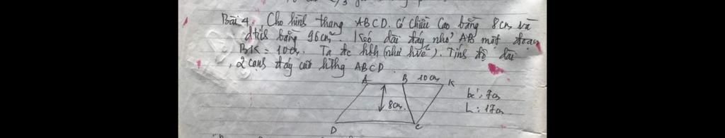 Bài 4 Cho hình thang ABCD, có chiều cao bằng xe và