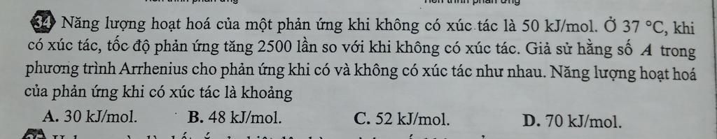 Xét tại `37°C`, với `1` mol chất, giả sử `A = text{const}`