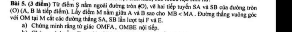 Xét tứ giác OMFA có:EBO=EMO=90 độ