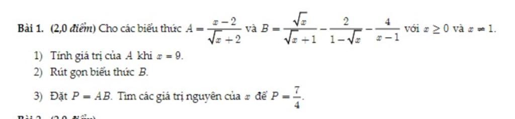 Bài 1. (2,0 điểm) Cho các biểu thức A=