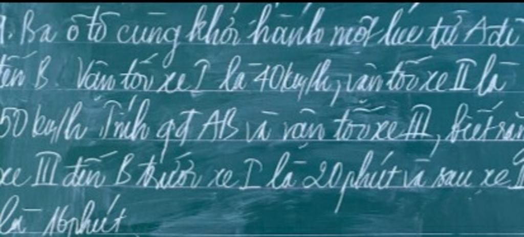 vận tốc của ba xe ???? đề bài yêu cầu là tìm vận tốc xe ba mà
