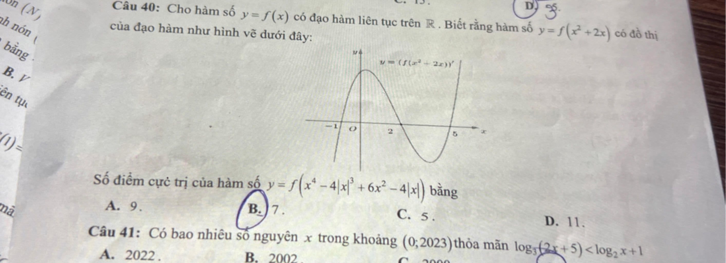 Câu 40: Cho hàm số y=f(x) có đạo hàm liên tục trên R . Biết rằng hàm số y = f(x + 2x) có đồ thị