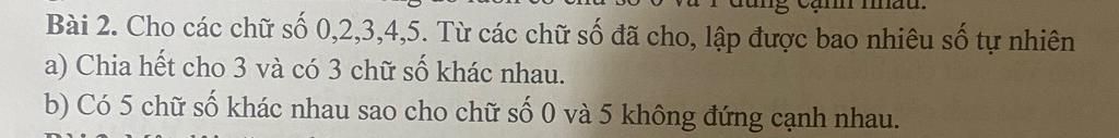 `=>` Có `96-42=54` số có `5` chữ số khác nhau sao cho chữ số `0` và `5` không đứng cạnh nhau