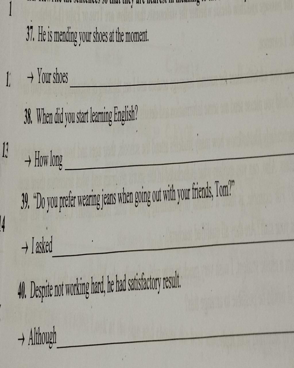 `39.` I asked Tom if he prefered wearing jeans when going out with his friends.