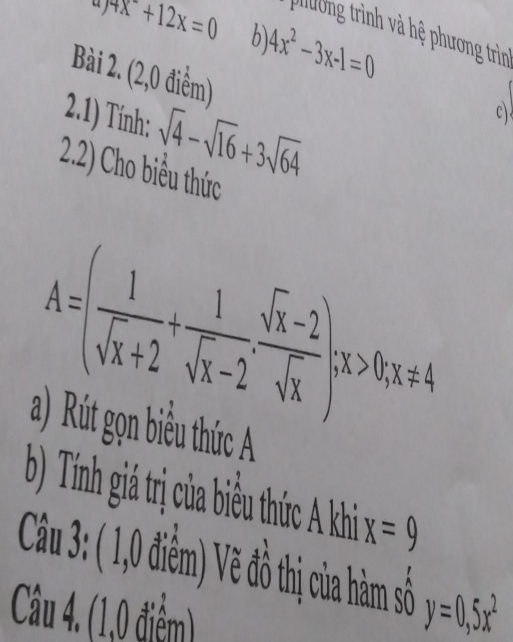 Câu 3: ( 1,0 điểm) Vẽ đồ thị của hàm số y=0,5x
