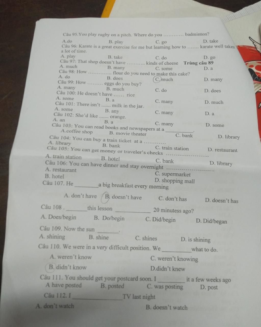 Câu 98: How