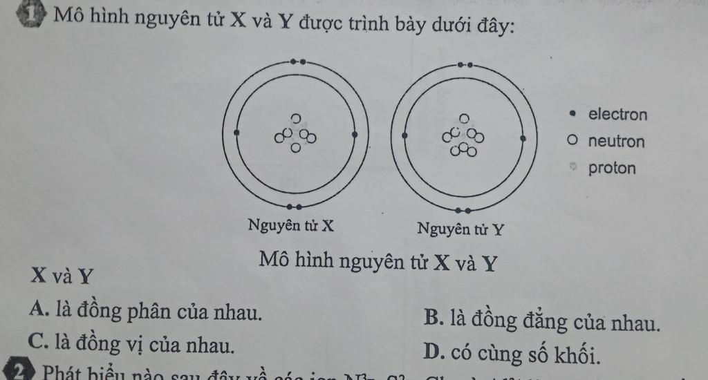 `=>` `X` và `Y` có cùng số proton nhưng khác số neutron