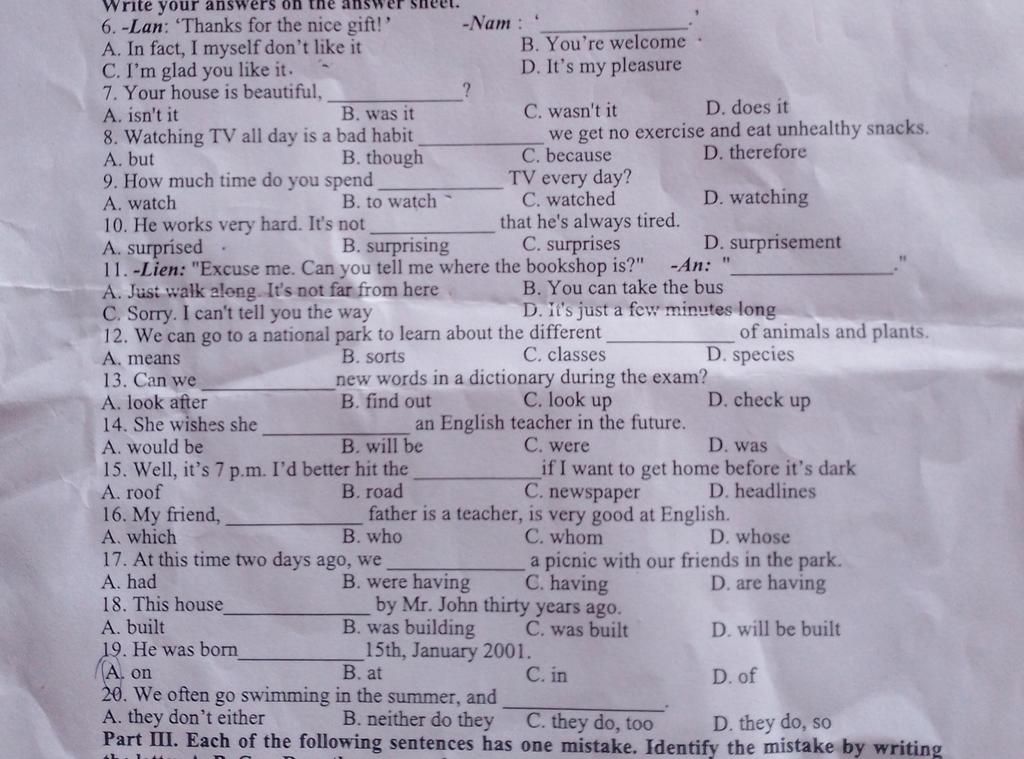 `->` Tag questions : S + am/is/are + O, isn't/aren't + S?