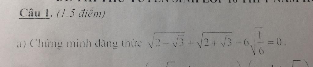 $\sqrt{2 -\sqrt{3}} $`+` $\sqrt{2 + \sqrt{3}} $ ` -6 \sqrt{1/6} = 0`