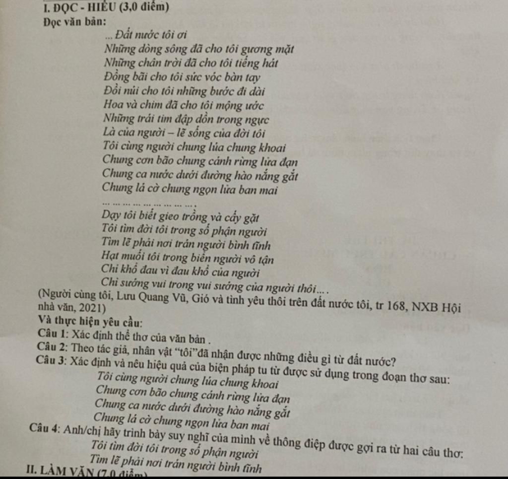 Câu 2: gương mặt, sức vóc bàn tay, tiếng hát, những bước đi dài, mộng ước, lẽ sống