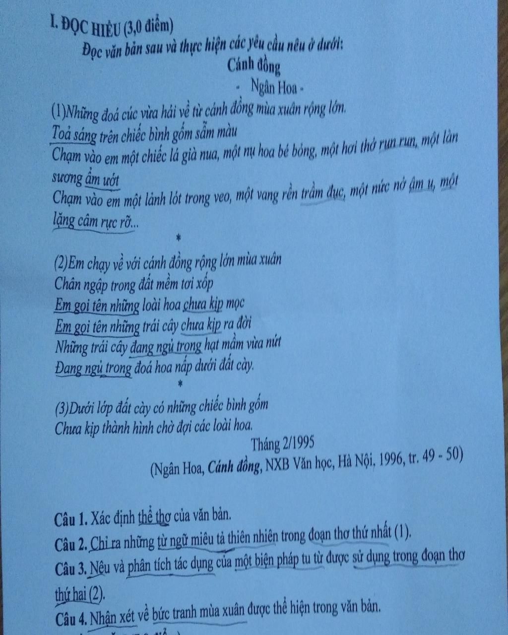 Câu 1: Thể thơ tự do