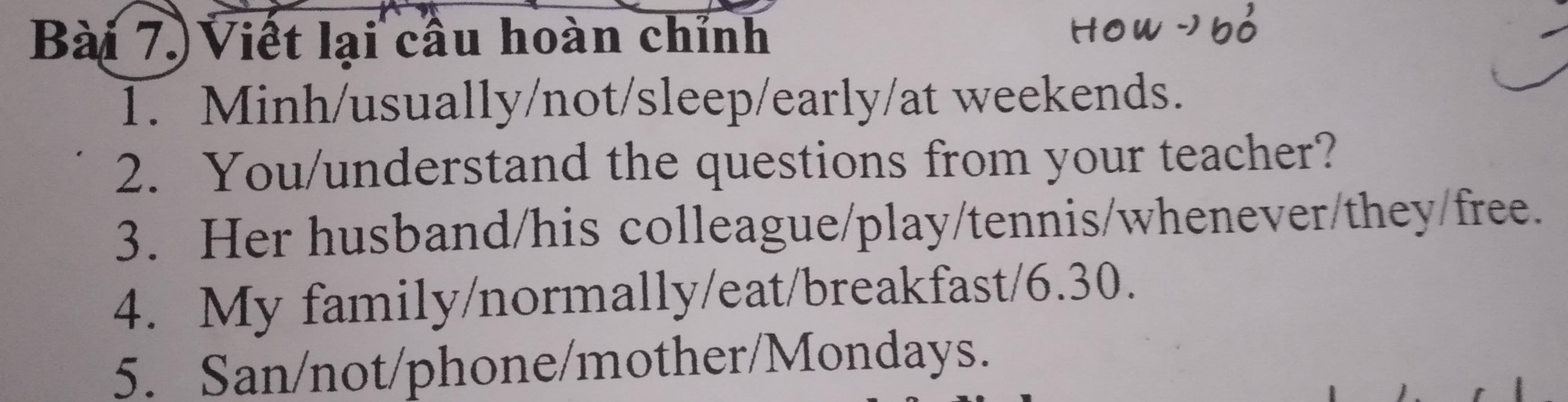 ⇒ Minh không thường xuyên ngủ sớm vào cuối tuần