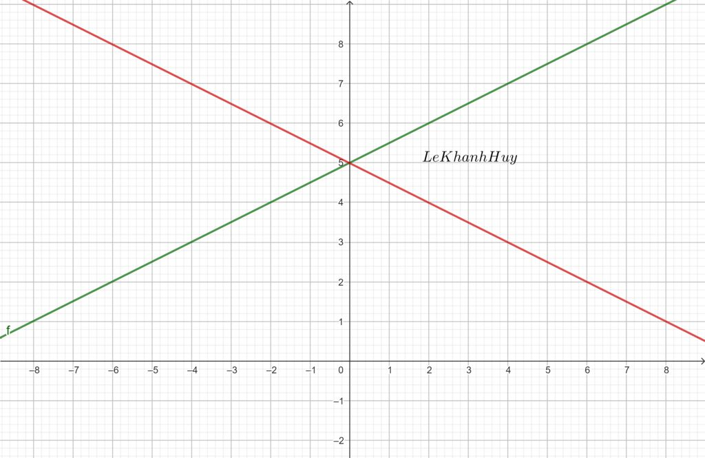Cho hai đường thẳng `y = 1/2 x + 5` và `y = -1/2 x + 5` . Hai đường thẳng đó: