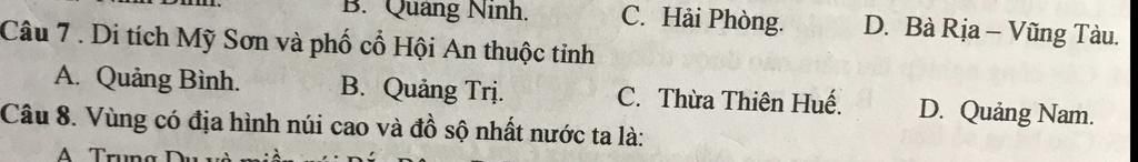 Câu 7 . Di tích Mỹ Sơn và phố cổ Hội An thuộc tỉnh