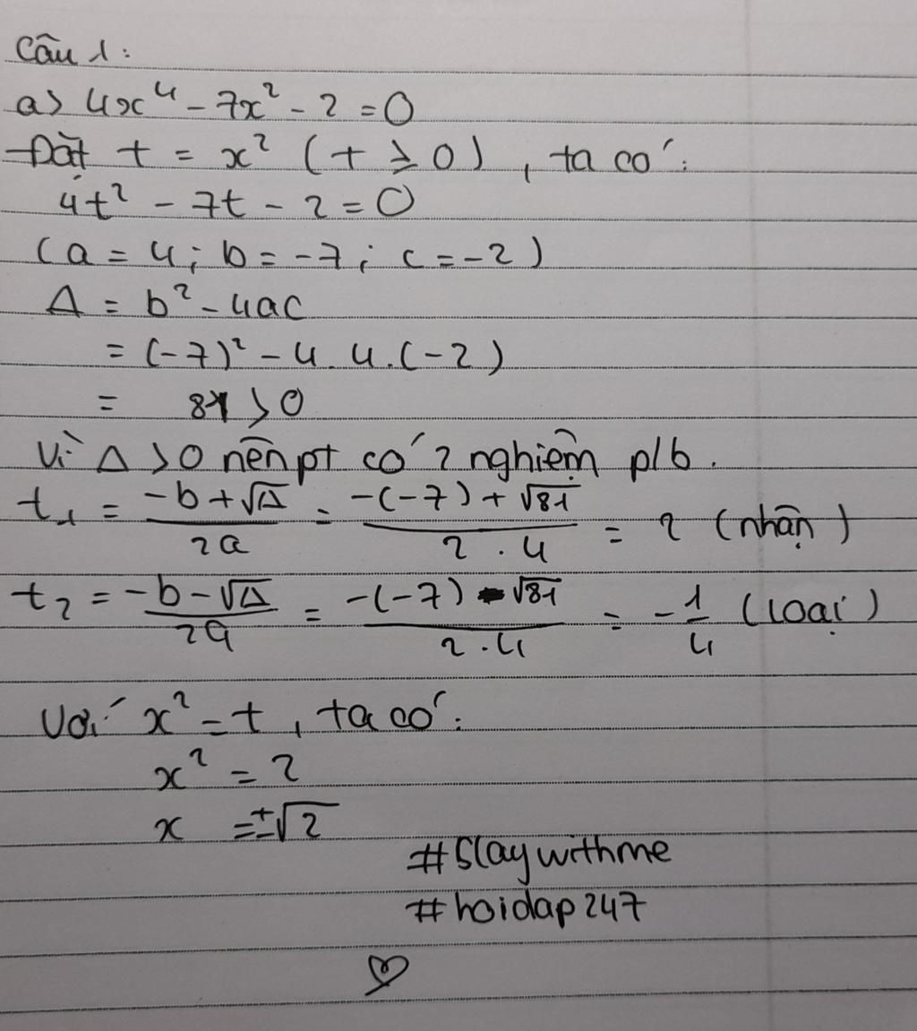 Với `x^2=t=>x^2=2<=>x=+- sqrt2`