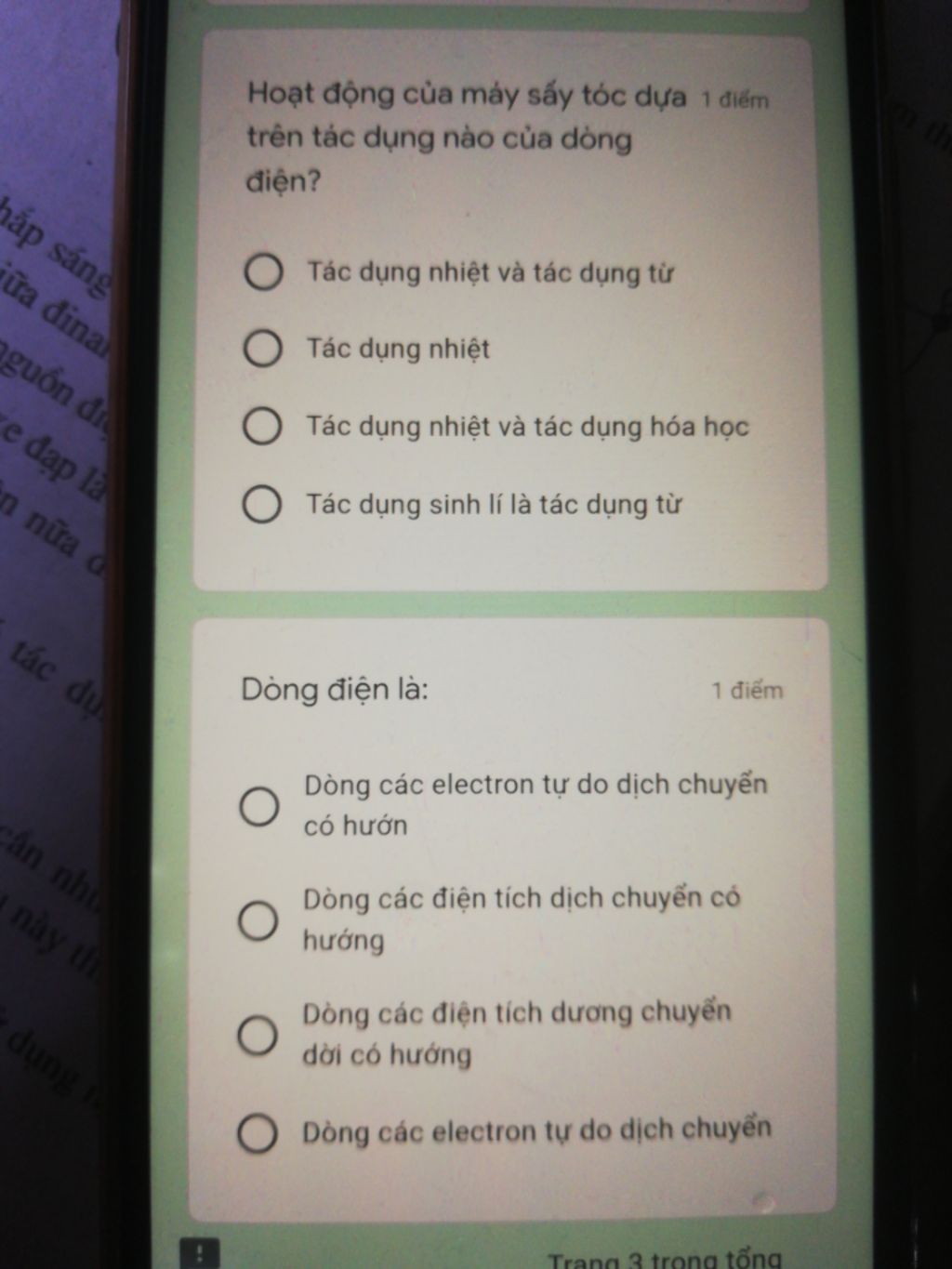 2 chọn 3 vì dòng điện là dòng chuyển dời có hướng của các điện tích dương