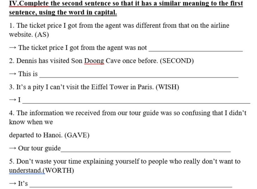 `4` `O`ur tour guide gave us such confusing information that I didn't know when we departed to Hanoi.