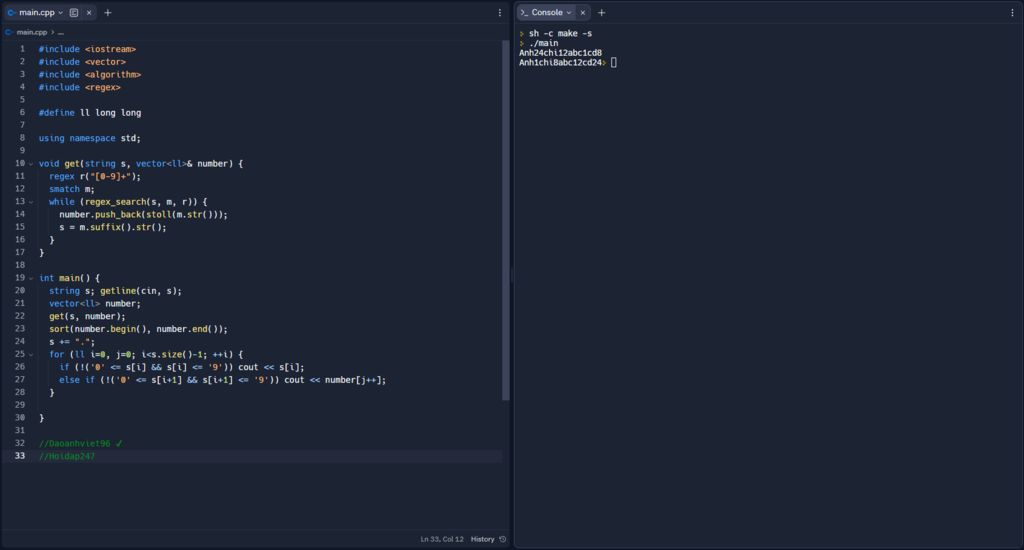 Ta có thể sử dụng biểu thức chính quy để tìm các số trong chuỗi, sắp xếp và xuất theo vị trí.
