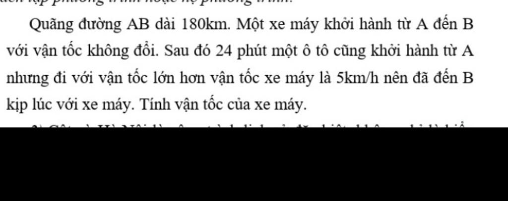 Do ô tô đến kịp lúc với xe máy, mà ô tô đi sau xe máy `24` phút nên ta có phương trình :