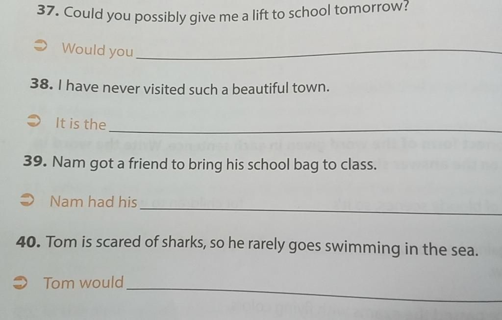 40, → Tom would go swimming in the sea if he wasn't scared of sharks