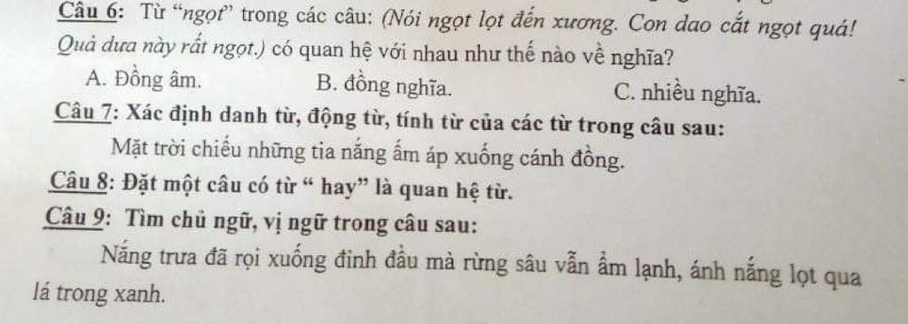 `-` Danh từ`:` Mặt trời, những tia nắng`,` cánh đồng