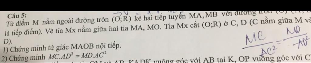 là tiếp điểm). Vẽ tia Mx nằm giữa hai tia MA, MO. Tia Mx cắt (O;R) ở C, D (C nằm giữa M và