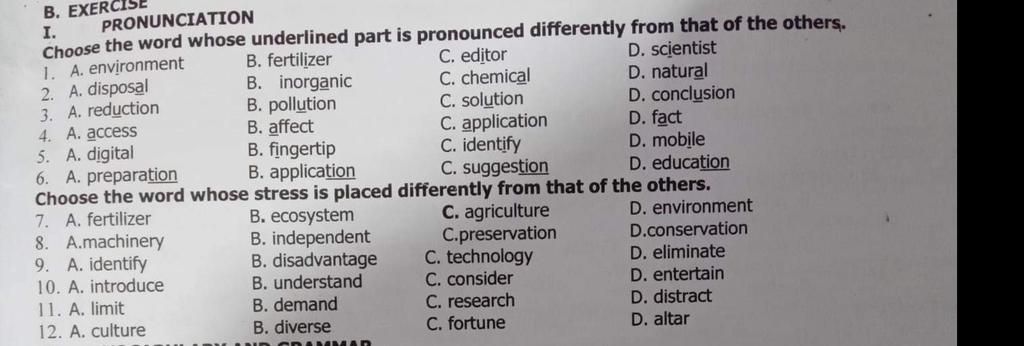 `1.C` (âm /ɪ/, còn lại /aɪ/)