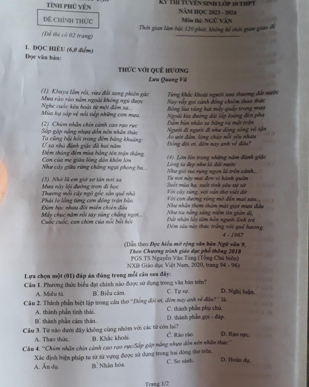 Môn thi: NGỮ VĂN