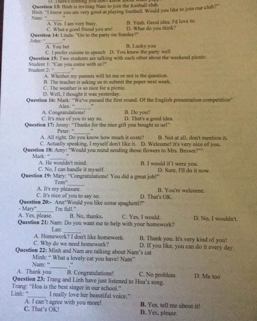 Binh: "I know you are very good at playing football. Would you like to join our club?"