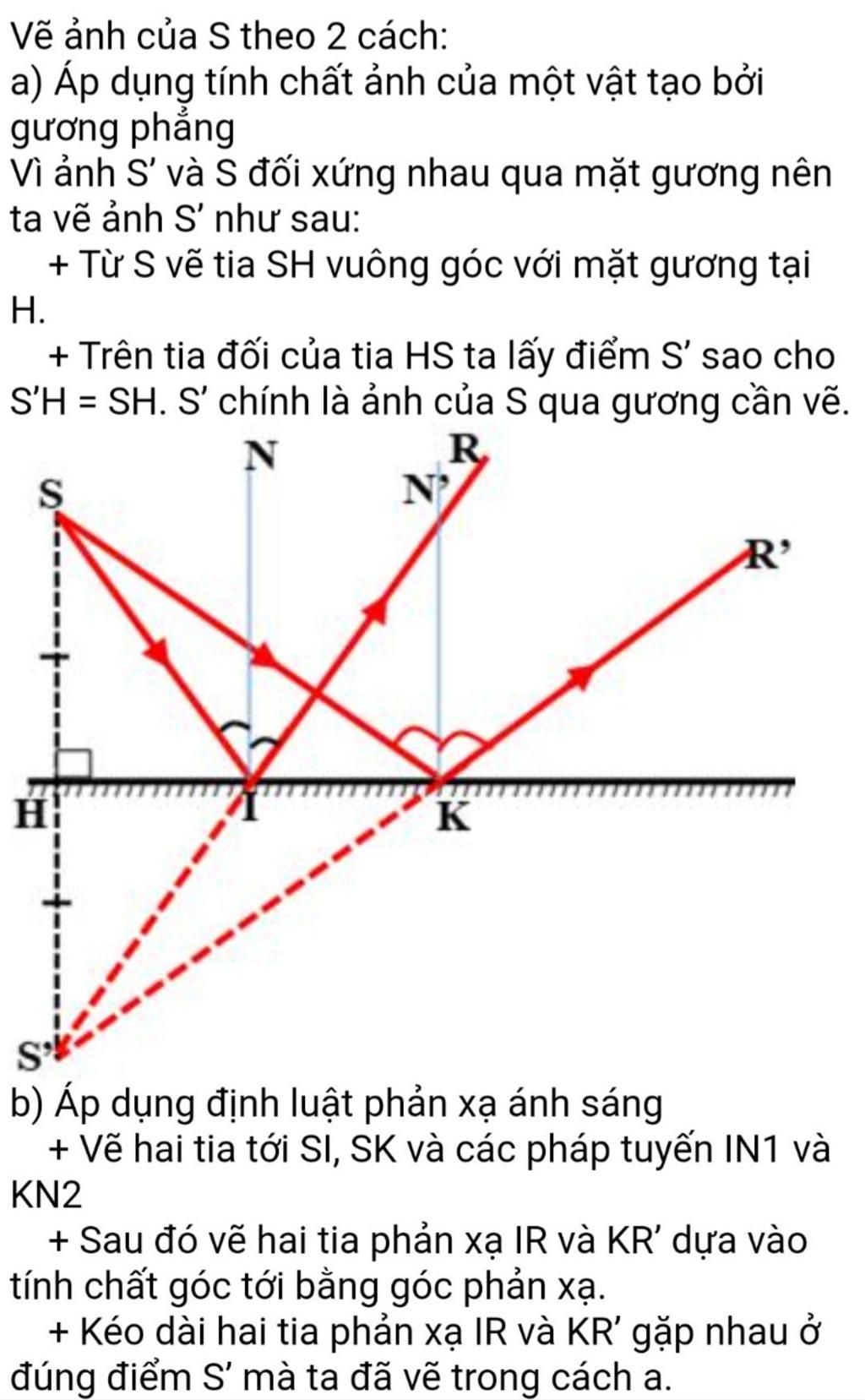 cho một điểm sáng s đặt trước một gương phẳng . cách gương 20cm . hãy vè ảnh của s tạo bởi gương theo hai cách