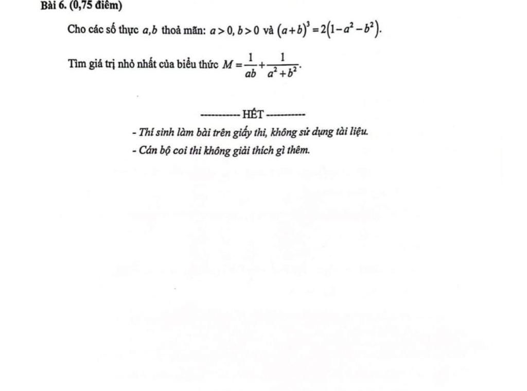 $ M = \dfrac{1}{ab} + \dfrac{1}{a² + b²}$