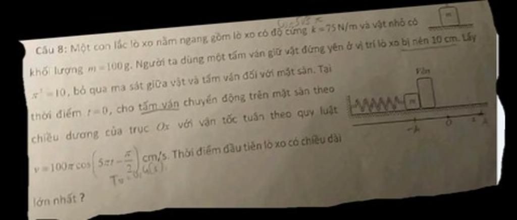 khối lượng m 100g. Người ta dùng một tấm ván giữ vật đứng yên ở vị trí là xa bị nên 10 cm. Lấy