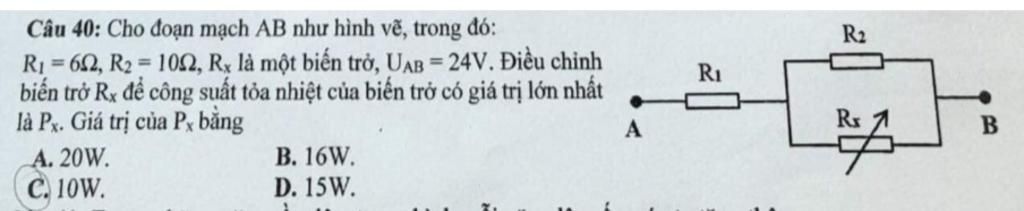 R1 nt ( R2 // Rx ) => Rtđ = R1 + R2x = 6 + [(10Rx)/(10 + Rx)] = (60+16Rx)/(10+Rx) ( ôm )