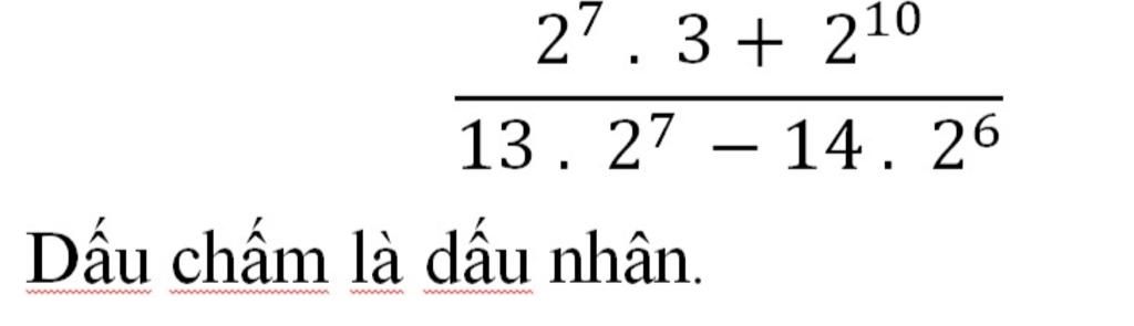 ` ( 2^7 . 3 + 2^10 )/( 13 . 2^7 - 14 . 2^6 ) `