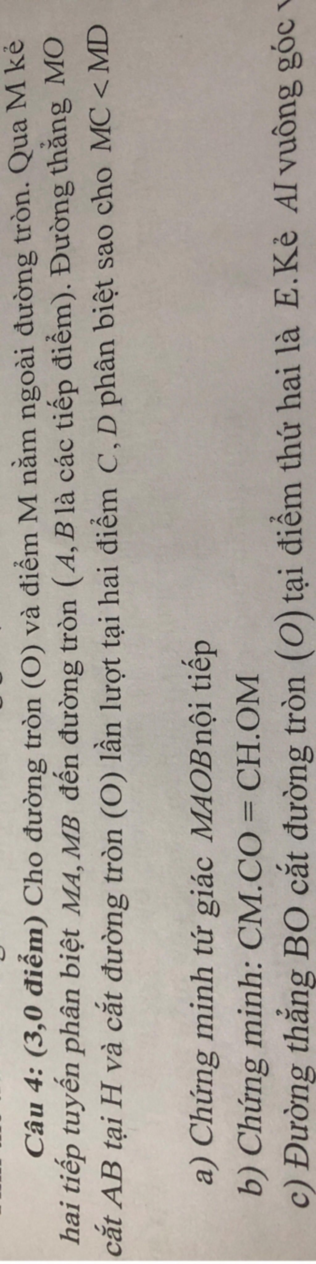a.Vì $MA, MB$ là tiếp tuyến của $(O)\to MA\perp OA, MB\perp OB$