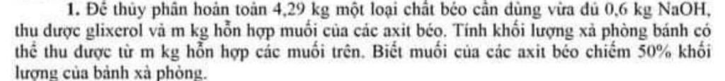 `=>`$m_{xà \,\, phòng}=\dfrac{4,43.100}{50}=8,86(gam)$