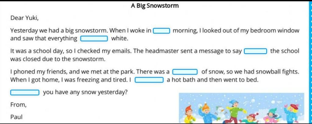 5. took (Quá khứ của "take", "take a bath" là đi tắm)