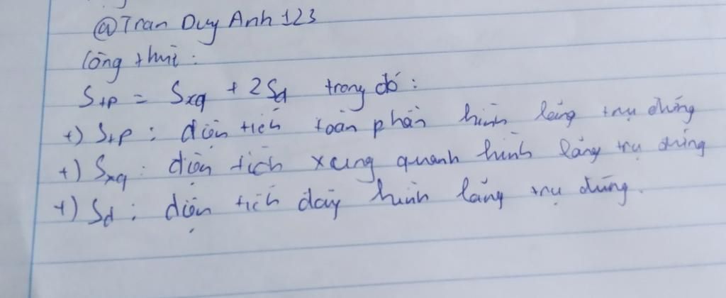 Cách tính diện tích toàn phần hình lăng trụ đứng: