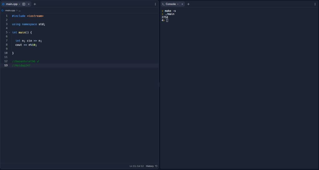 Để lấy chữ số hàng đơn vị của một số, ta có thể lấy số đó chia lấy dư cho 10.