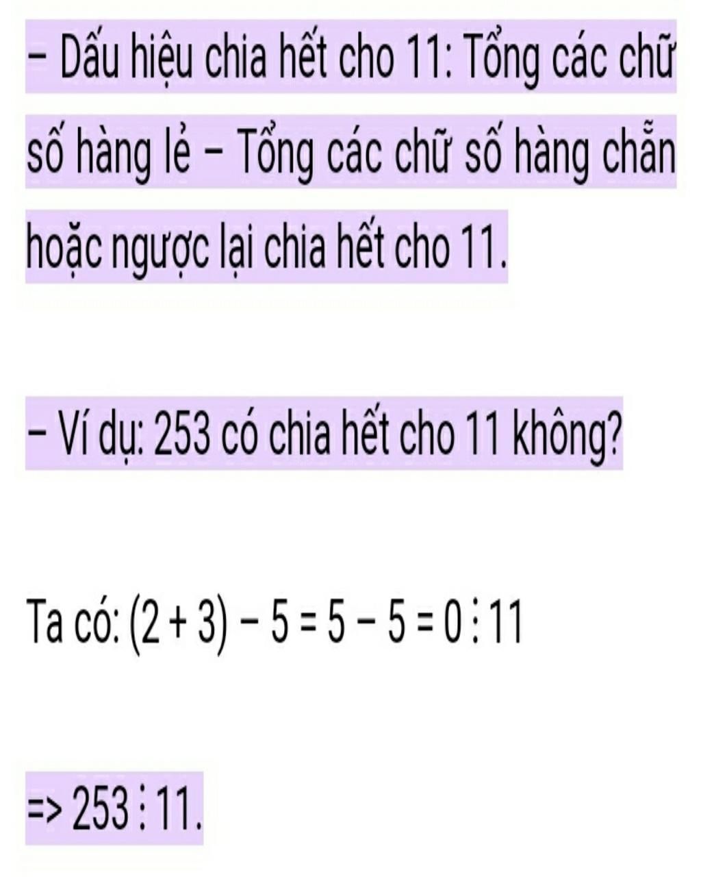 Sao dấu hiệu chia hết cho 11 là tổng các số chẵn mà sao có cả 3 vậy ạ