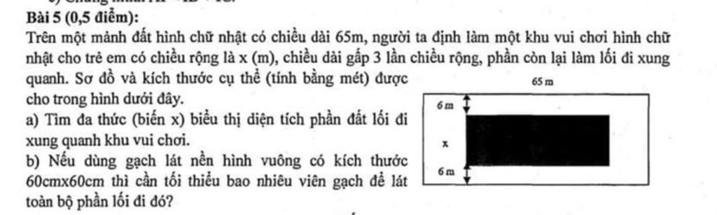 Đa thức (biến $x$) biểu thị diện tích phần đất lối đi xung quanh khu vui chơi: