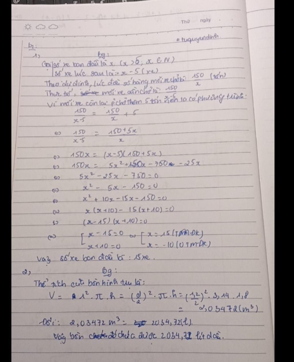 Gọi số xe ban đầu là $x (x>5$; xe)