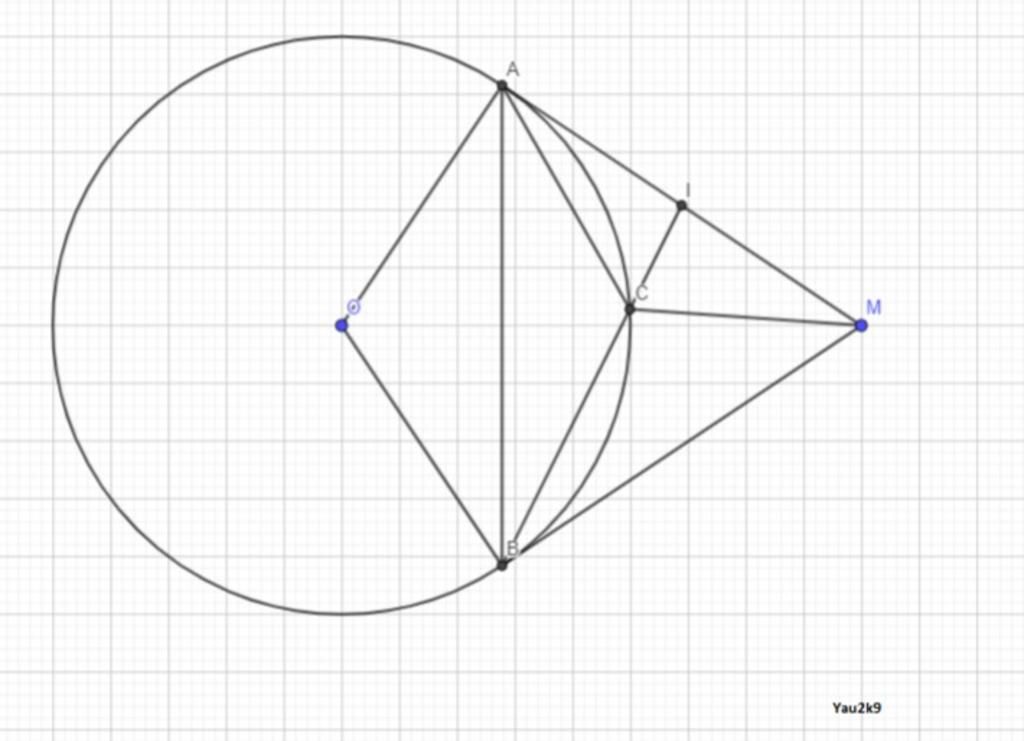 Vì `MA` là tiếp tuyến của `(O)` và `I\inMA` nên `AI` là tiếp tuyến của `(O)`