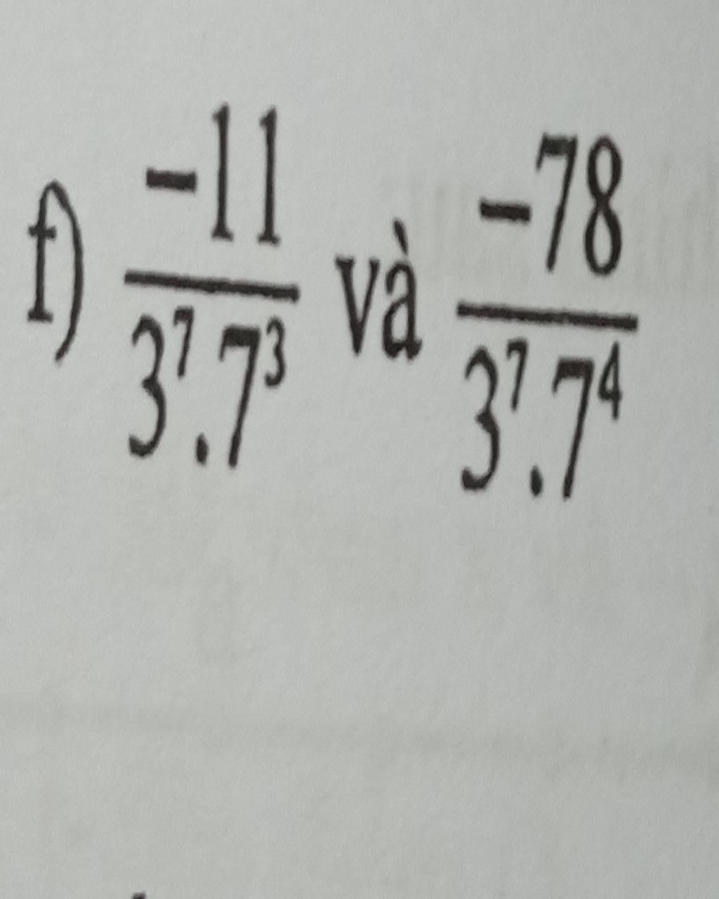 `=>(-77)/(3^7 . 7^4) > (-78)/(3^7 . 7^4)` hay `(-11)/(3^7 .7^3) > (-78)/(3^7 .7^4)`