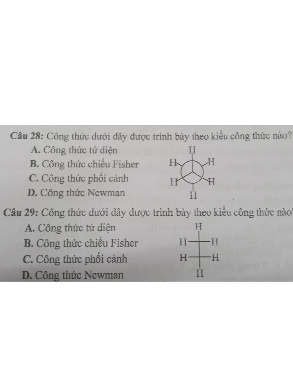 `-` Phép chiếu Newman là một phương pháp để quan sát các thế tức của hai nguyên tử cacbon kề nhau trong một phân tử, trong đó chúng ta nhìn theo trục của liên kết cacbon Cx - cacbon Cy sao cho cacbon phía trước che khuất cacbon phía sau (Chúng ta có thể quan sát từ Cx đến Cy hoặc từ Cy đến Cx). Phép chiếu này cho phép dễ dàng hình dung được hiệu ứng tương tác không gian giữa các nhóm cận kề trên hai nguyên tử cacbon.