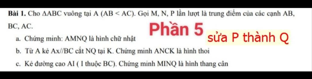 - MQ là đường trung bình của tam giác ABC ( do M và Q lần lượt là trung điểm của AB và AC )