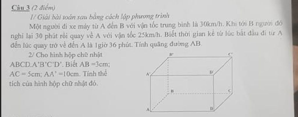 1) Gọi độ dài quãng đường `AB` là `x` (km) `(x>0)`
